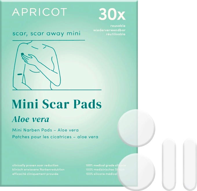 De Aloe Vera Mini Scar Pads van APRICOT zijn geschikt voor gebruik op oude en nieuwe littekens. Dankzij aloë vera wordt het litteken intensief gevoed. De pads zijn gemaakt van siliconen van medische kwaliteit en kunnen tot 30 keer hergebruikt worden. Ze kunnen ook worden gebruikt op de gevoelige huid of als aftersunverzorging.