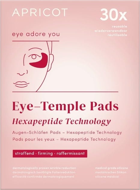 De Hexapeptide Eye & Temple Pads van APRICOT voeden, verzachten en verfrissen de huid rond je ogen met een hoogwaardig hexapeptide complex. De pads zijn gemaakt van siliconen van medische kwaliteit, zijn aangenaam zacht en kunnen tot 30 keer opnieuw worden gebruikt. Ze zijn bijzonder zacht voor de huid terwijl het hexapeptide complex zijn werk kan doen. Ideaal voor regelmatig gebruik als onderdeel van je schoonheidsroutine.