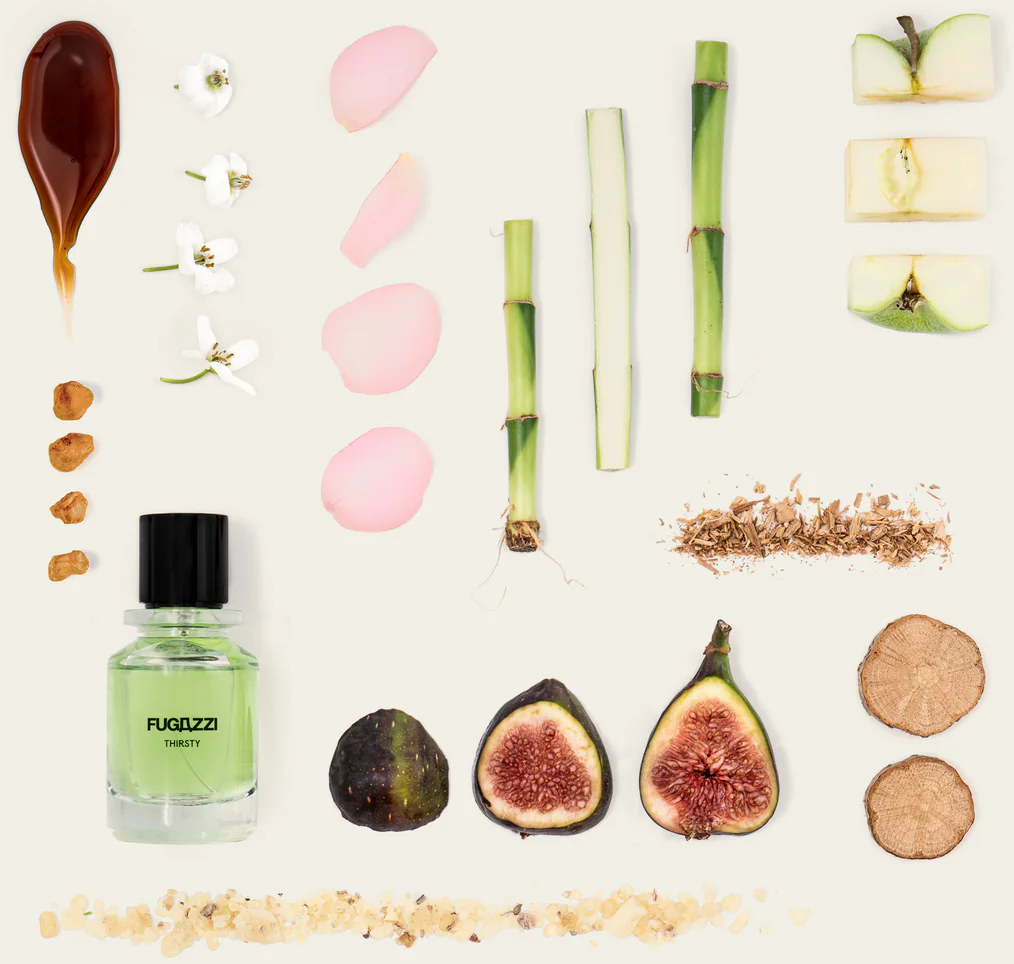 Het Thirsty Extrait de Parfum van Fugazzi is de ultieme frisheidsboost en voelt aan als de eerste diepe ademteug op een heldere zomerochtend. De geur opent heerlijk sprankelend met sappige appel en groene galbanum, terwijl luchtige klokjesbloem en het heldere gekraak van bamboe je zintuigen direct revitaliseren. In het hart ontvouwt zich een koele, bloemige elegantie: zachte jasmijn, kostbare roos en neroli smelten samen met de zoetheid van rijpe vijgen om een water-bloemige ervaring te creëren. De basis van aardend cederhout, warme amber en zachte musk laat een delicate, langdurige geur achter op je huid - zo verfrissend en puur als dauwdruppels na een ochtendbad. Een geur die pure vitaliteit uitstraalt en je als een veertje door de dag begeleidt.
