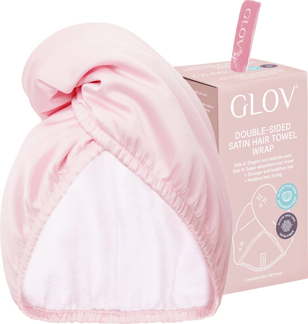 De omkeerbare tulband kan aan beide kanten gedragen worden. De superabsorberende GLOV® microvezel absorbeert vocht na het wassen van het haar, terwijl de satijnen kant buiten gedragen kan worden. Als de satijnen kant wordt omgedraaid, voorkomt dit haarbreuk, pluizen en klitten. De haarband is ideaal voor krullend haar of kan buiten gedragen worden als een geraffineerd accessoire voor een schone en gepolijste look als het haar nat is.