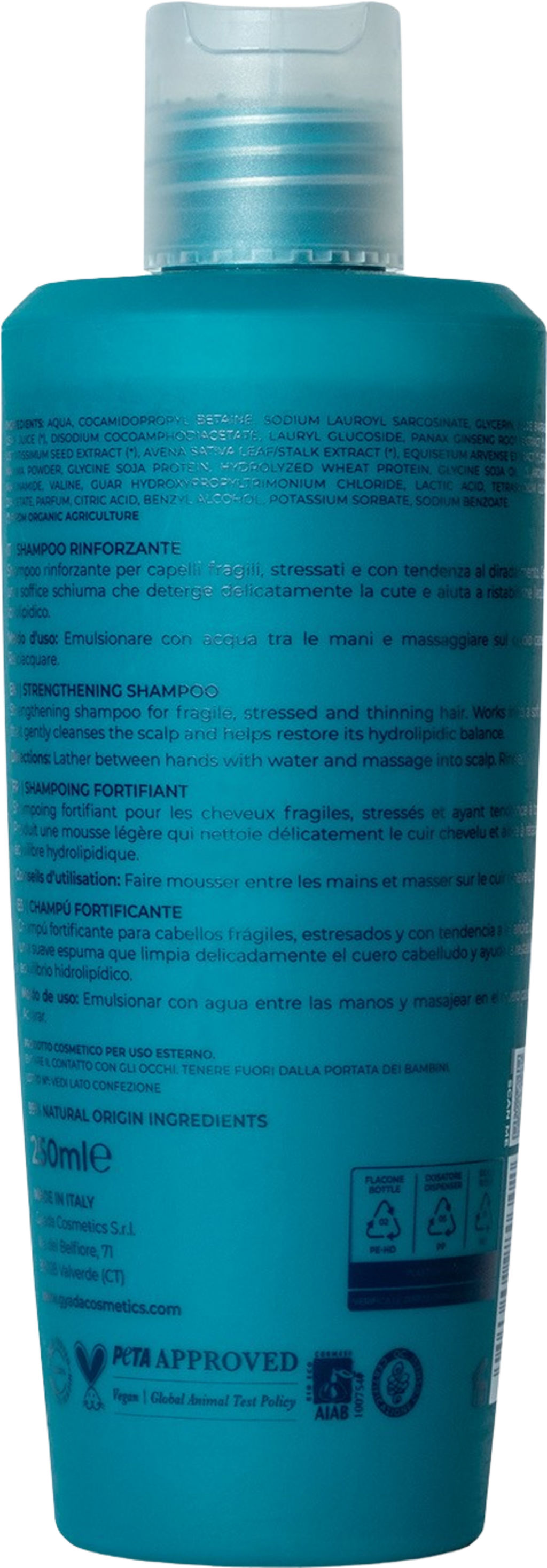 Een versterkende shampoo ontworpen om de vitaliteit van beschadigd, gestrest en dunner wordend haar te herstellen. Het is een geconcentreerd product dat de hydrolipidenfilm van het haar en de hoofdhuid vernieuwt. Het reinigt een hoofdhuid die gevoelig is voor droogheid of vettigheid. De shampoo bevat spirulina (algen die rijk zijn aan vitamines, minerale zouten en aminozuren), paardenstaart, ginseng en haver met herstructurerende en stimulerende eigenschappen.