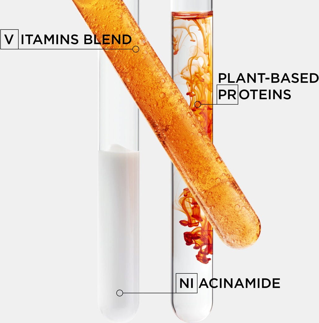 Aqua, Sodium Laureth Sulfate, Glycerin, Glycol Distearate, Dimethicone, Sodium Chloride, Cocamidopropyl Betaine, Sodium Lauryl Sulphate, Hexylene Glycol, Citricacid, Stearamidopropyl Dimethylamine, Sodium Benzoate, Sodium Hydroxyde, Amodimethicone, Coco-Betaine, Guar Hydroxypropyltrimonium Chloride, Trideceth-10, Salicylic Acid, Carbomer, Panthenol, Niacinamide, Ascorbyl Glucoside, Butylene Glycol, Linalool, Peg-100 Stearate, Steareth-6, Limonene, Trideceth-3, Phenoxyethanol, Hydrolized Wheat Protein, Hydrolyzed Corn Protein, Hydrolyzed Soy Protein, Fumaric Acid, Acetic Acid (Essigsäure), Iris Florentina Root Extract, Parfum
