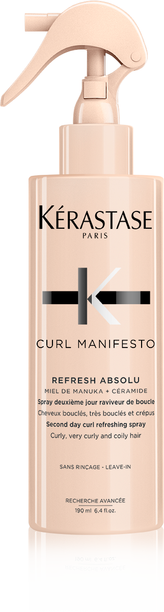 De Refresh Absolu is een tweede-dags krulverfrissende spray die is ontwikkeld voor krullende, zeer krullende en krullende haartypes. Het bevordert de natuurlijke kruldefinitie en verfrist het haar. Geformuleerd met manukahoning en ceramiden.