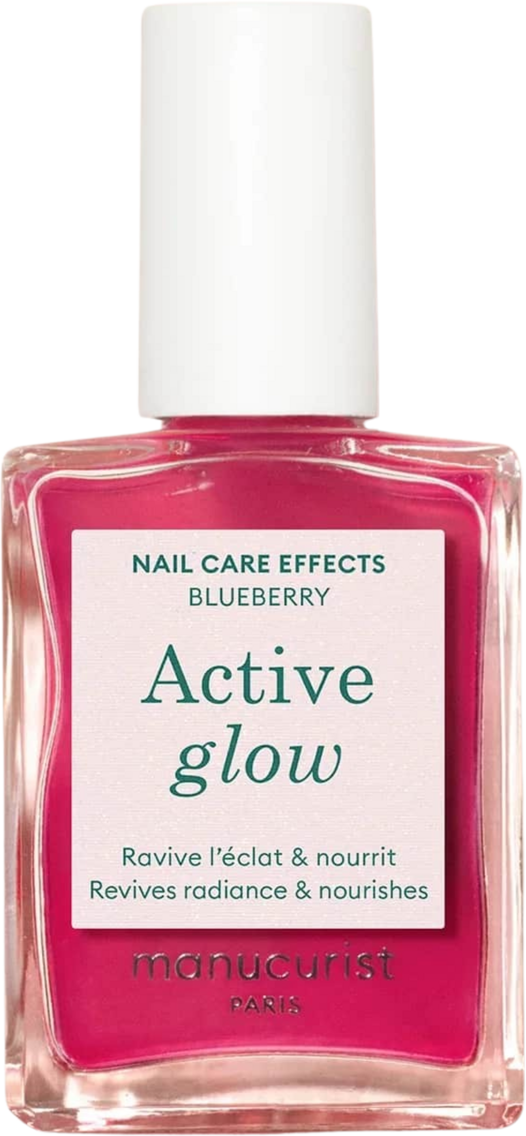 De Active Glow Blueberry van Manucrist biedt een mix van uitstekende nagelverzorging en glanzende kleur. De bio-gebaseerde lak richt zich op een natuurlijke ingrediëntenmix van Lactobacillus Ferment, AHA en blauwe bosbesextract, en geeft een onmiddellijke roze glans met spiegelachtige schittering. Daarbij worden de nagels met slechts één veeg hersteld en versterkt. De formule bevat ook zoete amandelolie, bekend om zijn hydraterende en voedende eigenschappen. De nagellak is tevens in staat om verzwakte, broze nagels te versterken en hun structuur te herstellen.