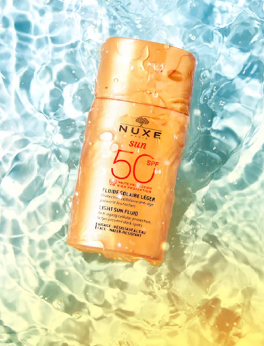 SUN Light Fluid High Protection SPF50 Face van NUXE is speciaal geschikt voor de gemengde huid en biedt bescherming tegen zonneschade en vroegtijdige huidveroudering. Voor gebruik moet het handige zakformaat goed geschud worden om een lichte en vloeibare textuur met een natuurlijke 'no makeup' look te bereiken. De waterbestendige formule voorkomt uitdroging van de huid en zorgt voor een nog intensere bruining.