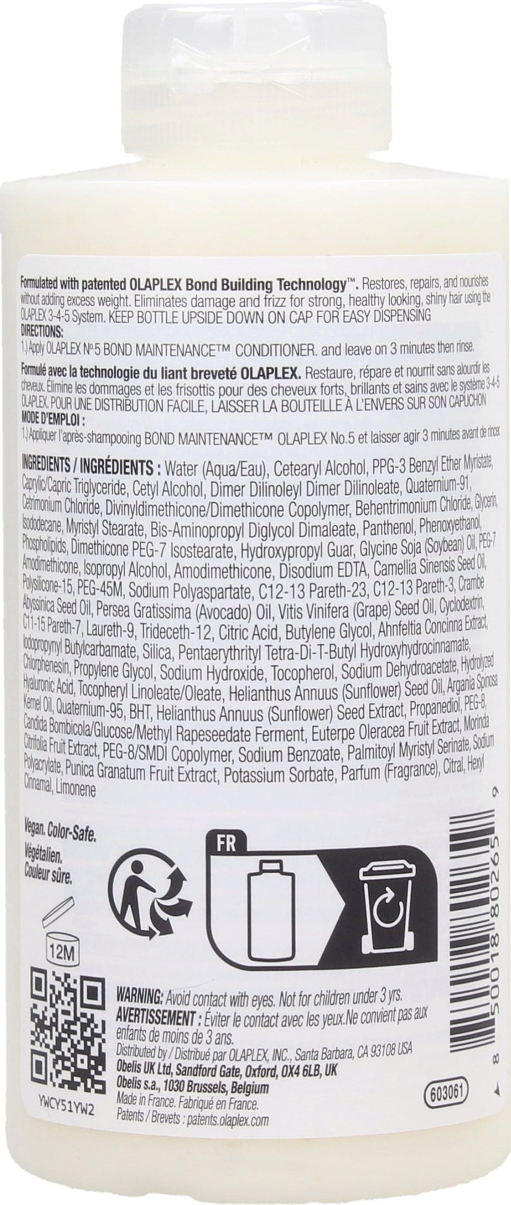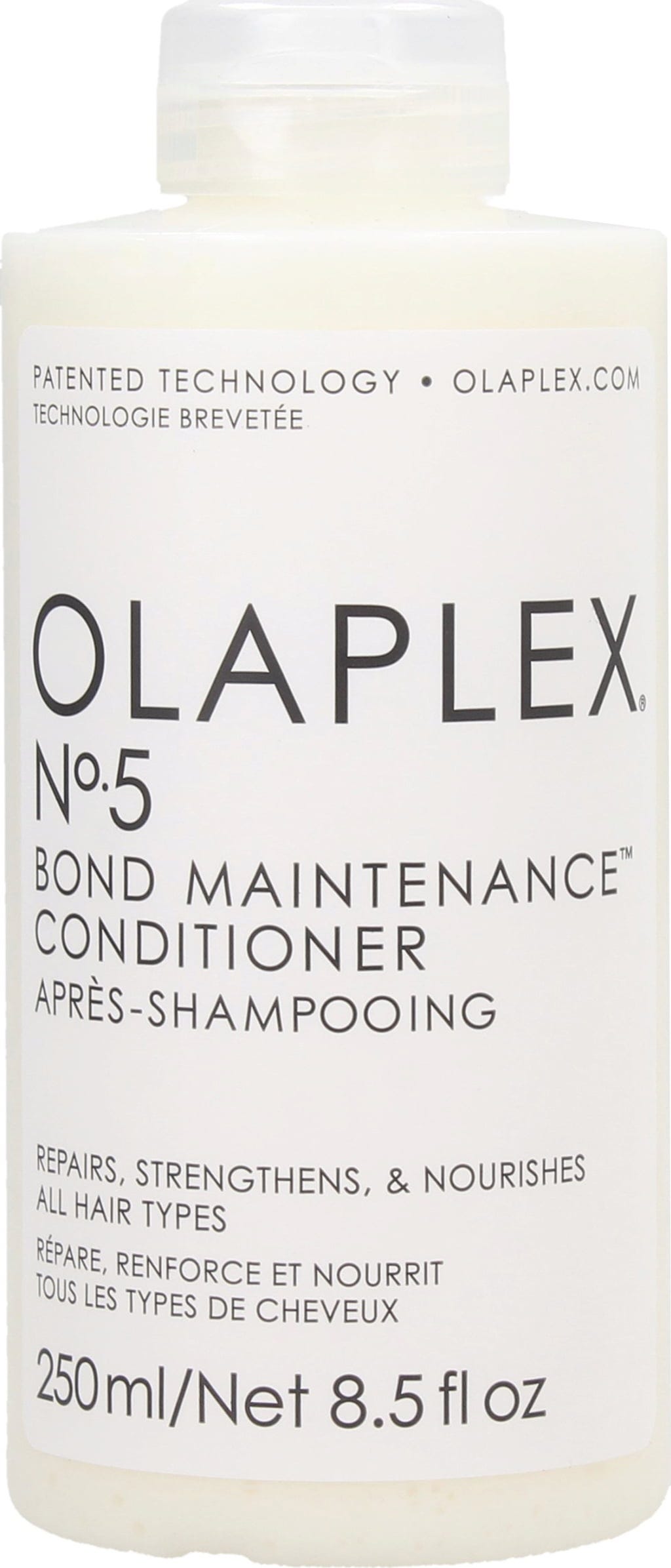 Met het veelvuldig gepatenteerde Olaplex-bestanddeel Bis-Aminopropyl Diglycol Dimaleate, herstelt de Olaplex No. 5 Bond Maintenance Conditioner beschadigde disulfidebindingen in het haar en repareert het schade aan zowel beschadigd als aangetast haar. Structurele schade wordt verbeterd, gespleten haarpunten worden gereduceerd. Het resultaat is sterk, gezond en glanzend haar.