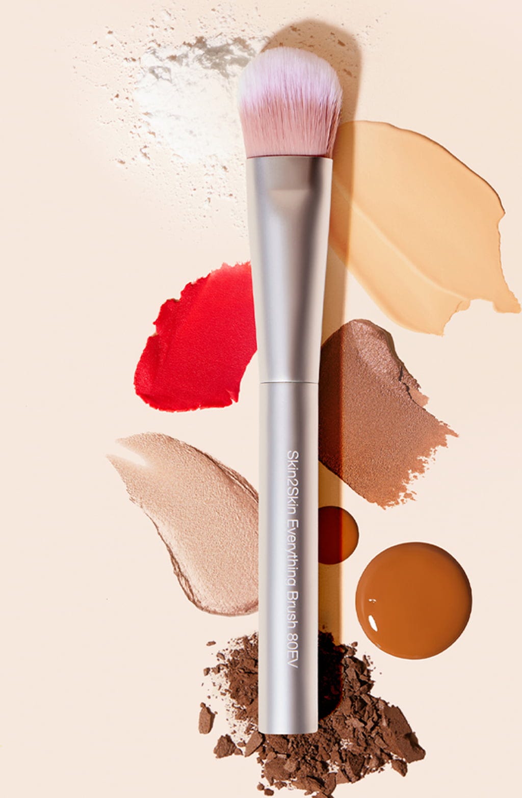 De Skin2Skin Everything Brush van RMS Beauty is perfect voor het aanbrengen van elk type make-up. Of het nu gaat om poeder- of crèmetexturen, dit praktische accessoire bewijst zijn professionele capaciteiten. De penselkop is ontworpen met zacht geitenhaarimitatie en neemt dankzij het ideale gewicht en doordachte ontwerp precies de juiste hoeveelheid product op. De flexibele, zachte haartjes voelen licht aan op de huid en maken gecontroleerd en precies aanbrengen mogelijk.