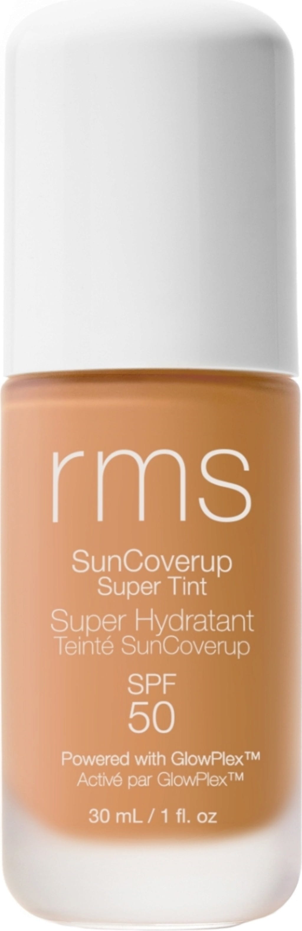 De SunCoverup Super Tint SPF 50 van RMS Beauty is een siliconenvrije, getinte vochtinbrengende crème met een hoge, minerale beschermingsfactor. Het geeft je een stralende, gelijkmatig getinte teint en beschermt daarbij tegen zonnestraling en blauw licht. De doordachte formulering met een speciale GlowPlex™-complex egaliseert, verstevigt en verheldert de huid, terwijl plantaardig squalaan met veel vocht de huid hydrateert. Bisabolol en een door RMS gecreëerde adaptogene kruidenmix zorgen met hun verzachtende eigenschappen voor een balancerend effect. De lichte, ademende formule voelt daarnaast volledig gewichtloos aan op de huid en geeft je een natuurlijk stralende teint.
