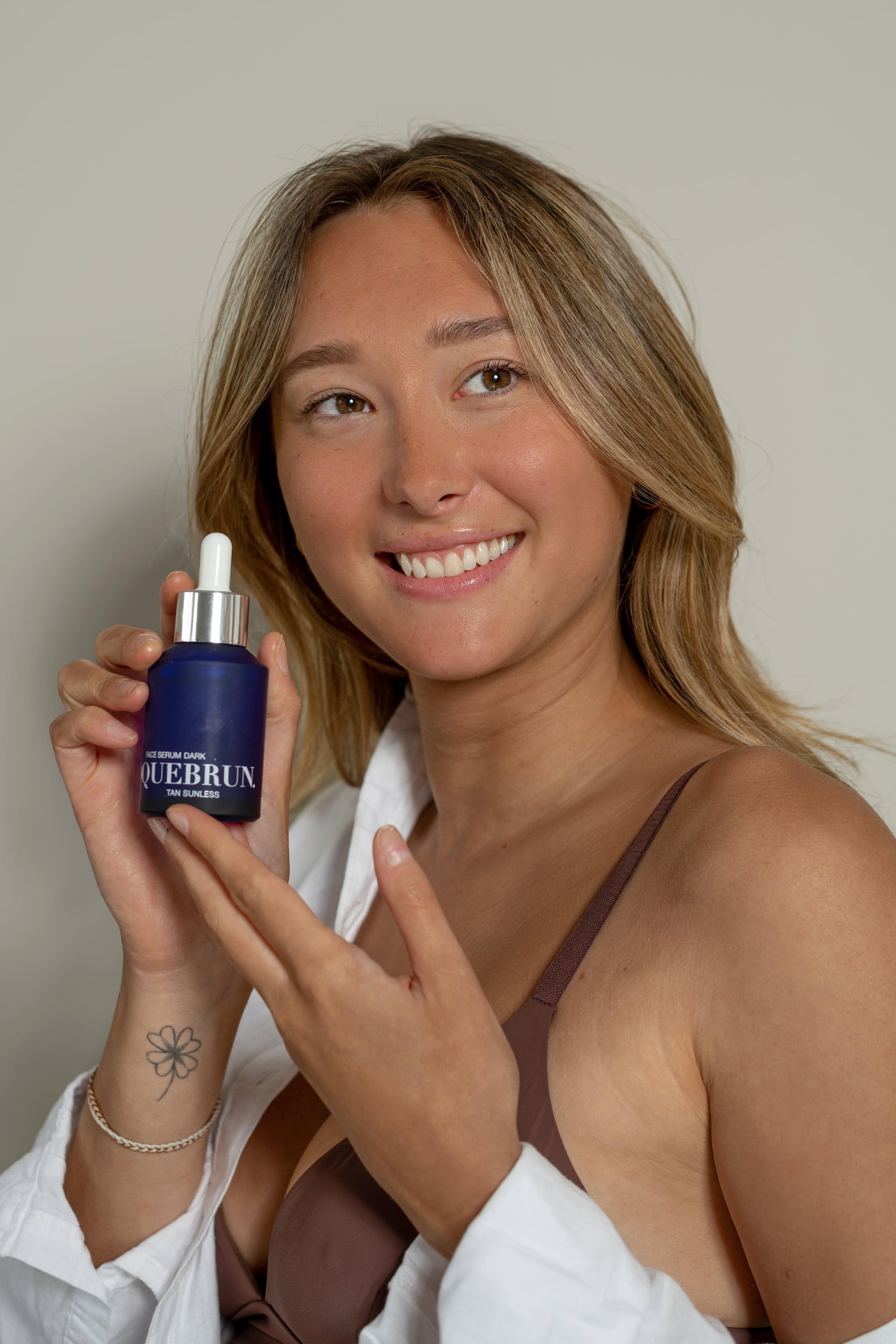 - Geniet van je prachtige en natuurlijke, zonloze gezichtsbruine teint!