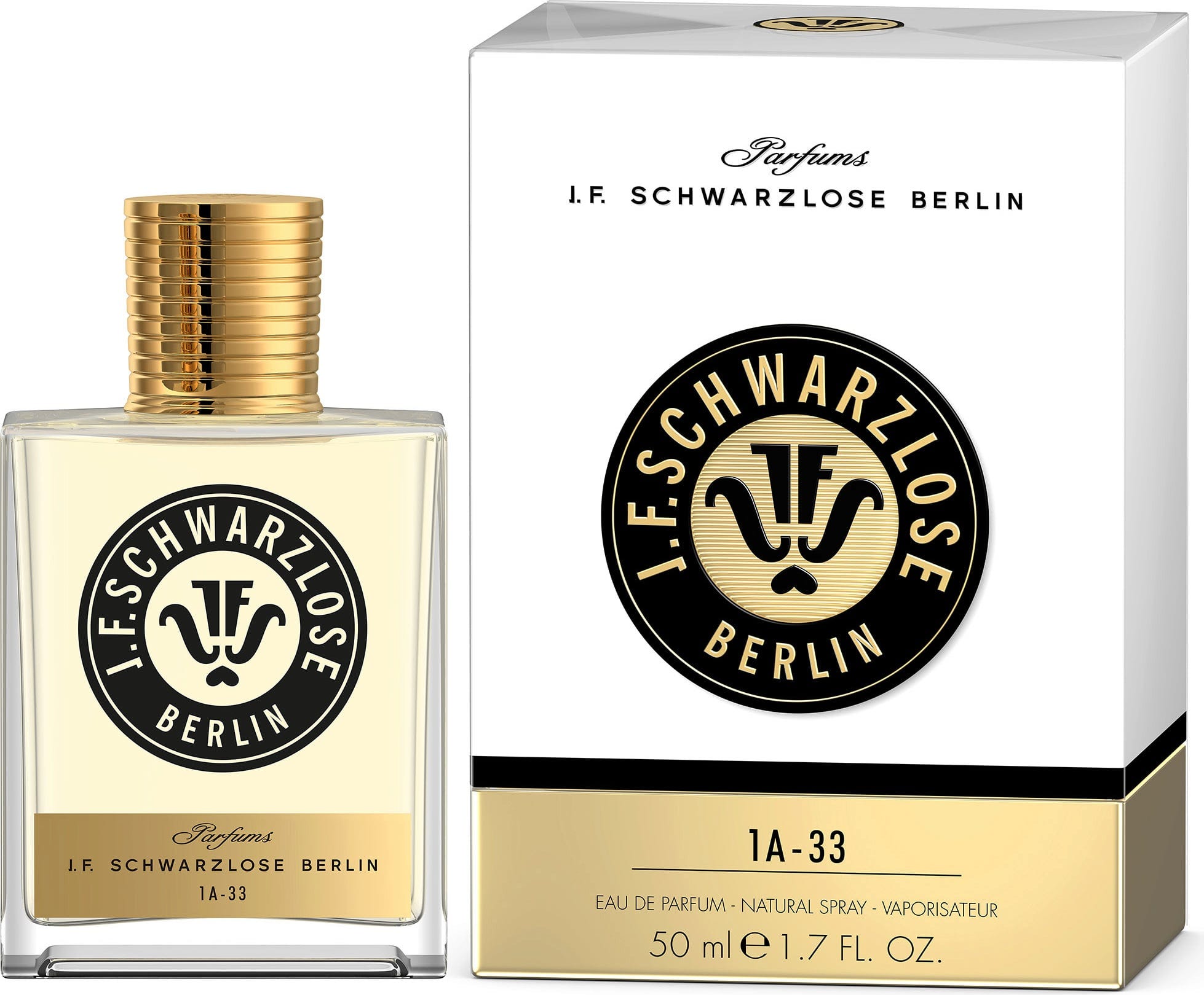 Dit is een herinterpretatie van een van de meest succesvolle geuren van J.F. Schwarzlose Berlin. De Eau de Parfum is vernoemd naar het voormalige Berlijnse kenteken: 1A-33. 1A stond voor Berlijn, het nummer 33 voor de locatie van het bedrijf, Moabit. Heel kenmerkend is de lindebloesem die doet denken aan de beroemde Berlijnse avenue "Unter den Linden". Jasmijn-sambac en magnolia geven de bloemige geur verder diepte.