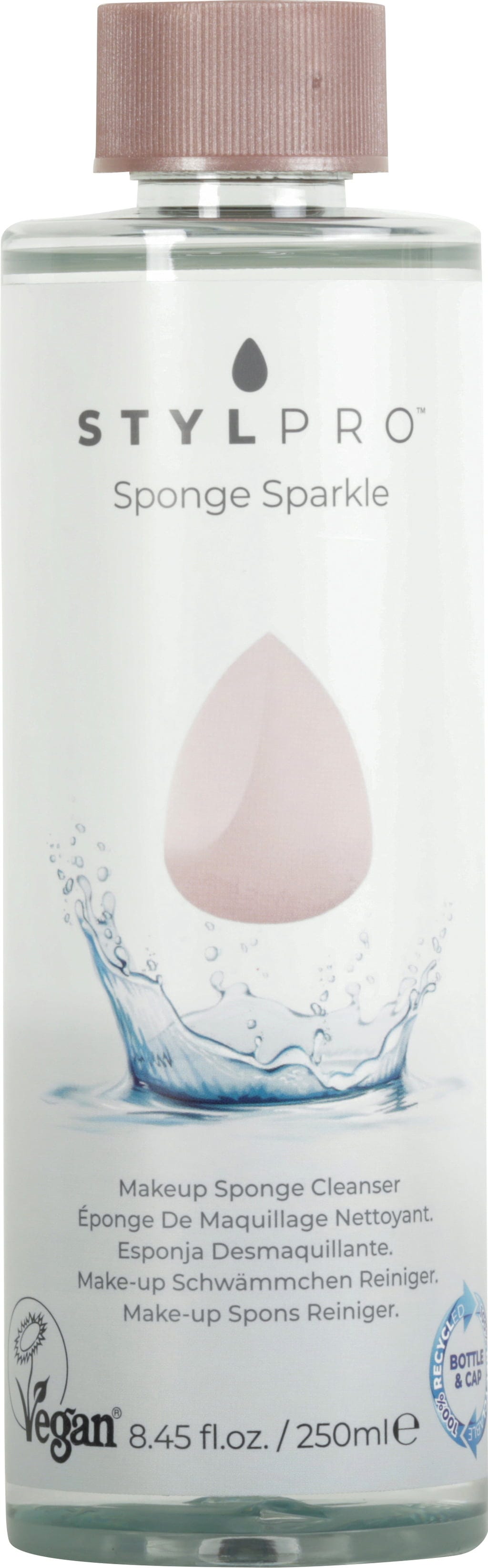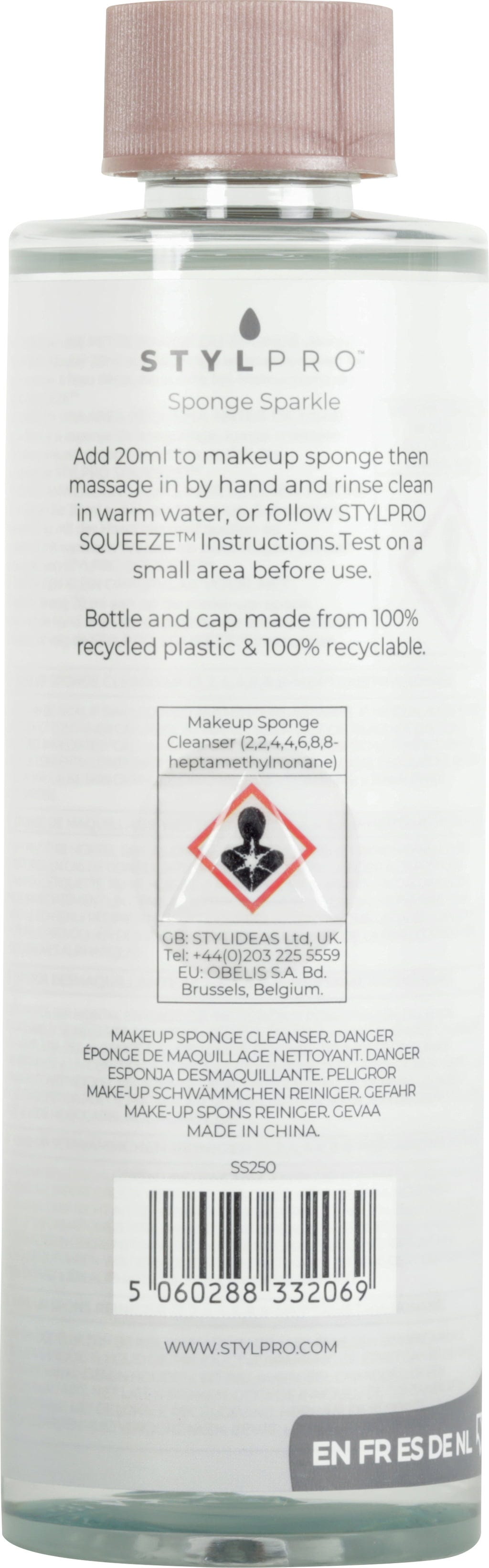 De Makeup Sponge Cleanser van StylPro is ontwikkeld om sponsen te reinigen en verwijdert zelfs de meest hardnekkige foundation. De zachte maar grondige reinigingsformule dringt diep door in iedere porie en maakt de spons direct weer klaar voor gebruik. Vrij van alcohol, parabenen, sulfaten, geurstoffen en geregistreerd bij de Vegan Society, verlengt dit oplosmiddel de levensduur van je accessoires en kun je het met een gerust hart op je huid gebruiken.