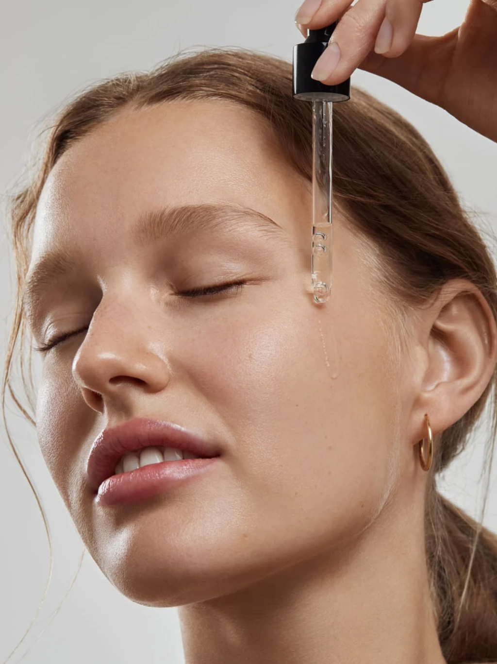 • Breng vervolgens 3-4 druppels van het serum aan in je handpalm of direct op voorhoofd, wangen en kin en masseer het zachtjes in. Vergeet hals en decolleté niet!